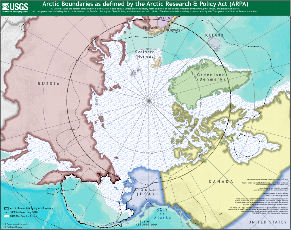Region arktyczny jest ważny ze względu bezpieczeństwa nuklearnego i styku interesów Europy, Rosji, Chin i USA.Il. USGS, domena publiczna